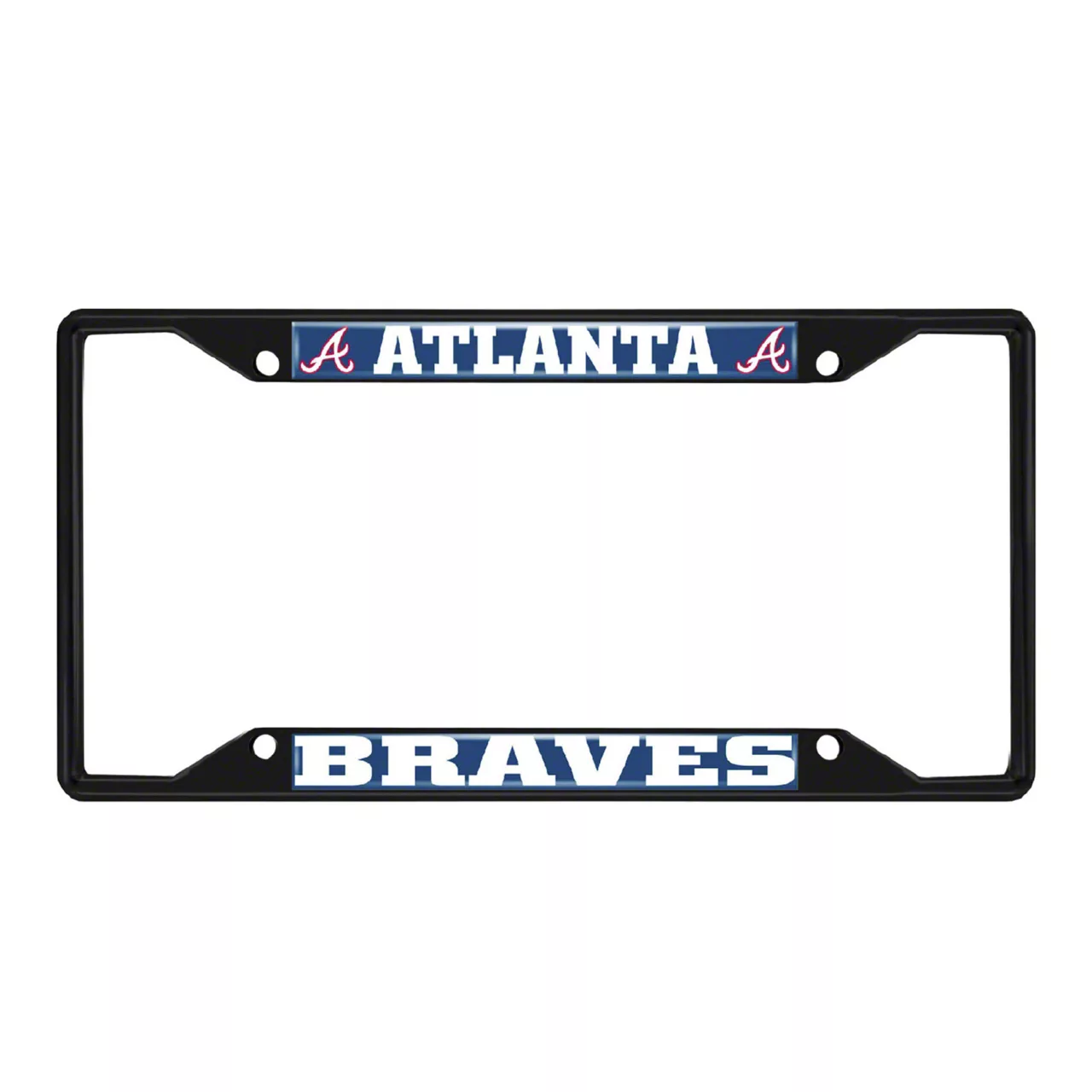 License Plate Frame with Atlanta Braves Logo; Black and Navy (Universal; Some Adaptation May Be Required)