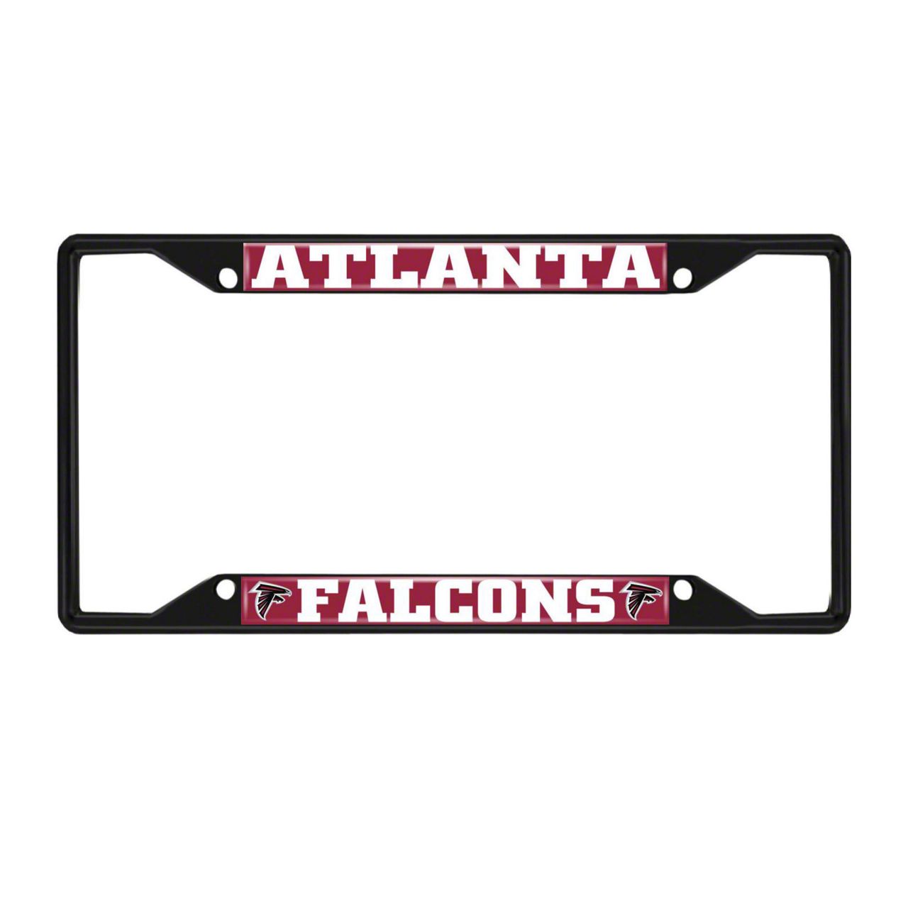 License Plate Frame with Atlanta Falcons Logo; Black and Red (Universal; Some Adaptation May Be Required)