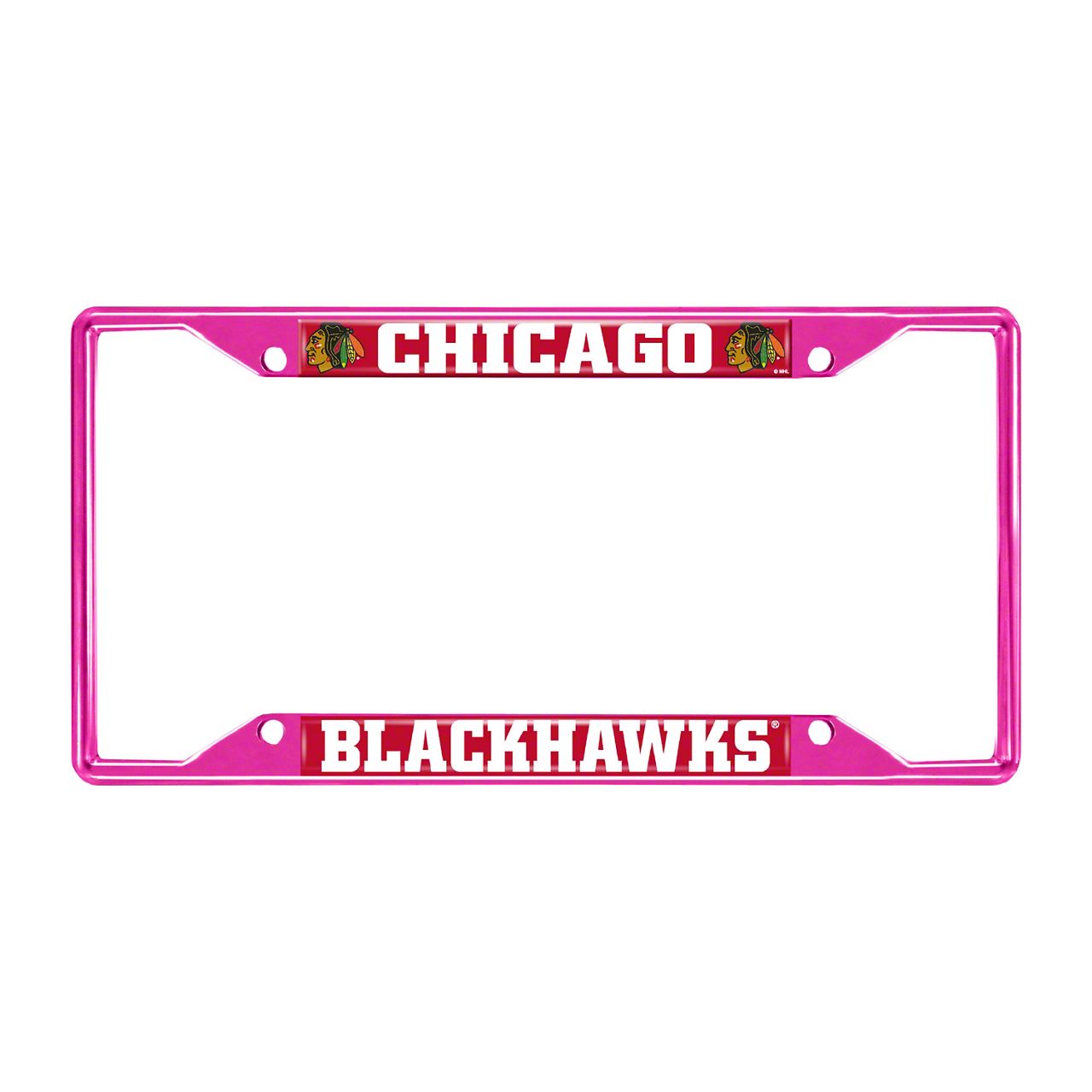 License Plate Frame with Chicago Blackhawks; Pink (Universal; Some Adaptation May Be Required)