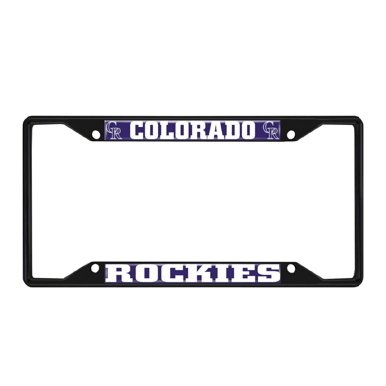 License Plate Frame with Colorado Rockies Logo; Black and Purple (Universal; Some Adaptation May Be Required)