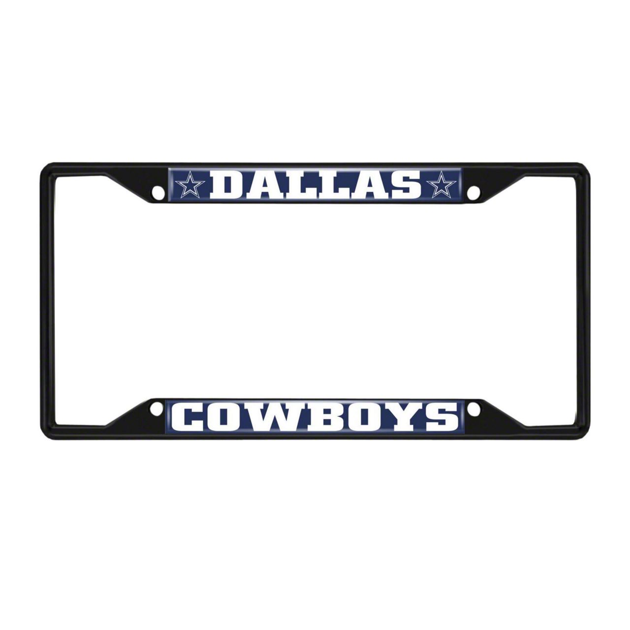 License Plate Frame with Dallas Cowboys Logo; Black and Navy (Universal; Some Adaptation May Be Required)