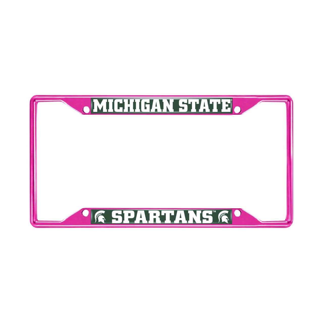 License Plate Frame with Michigan State; Pink (Universal; Some Adaptation May Be Required)