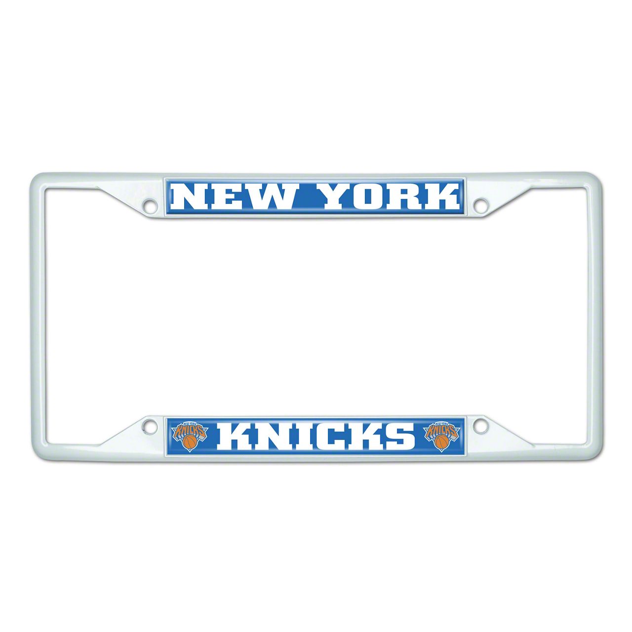 License Plate Frame with New York Knicks; White (Universal; Some Adaptation May Be Required)
