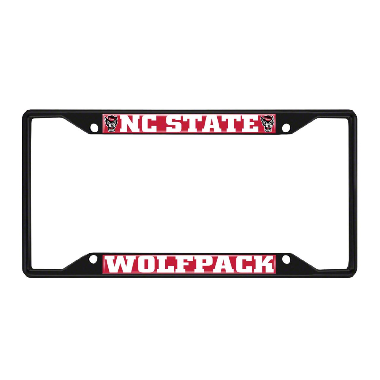 License Plate Frame with North Carolina State University Logo; Black and Black (Universal; Some Adaptation May Be Required)