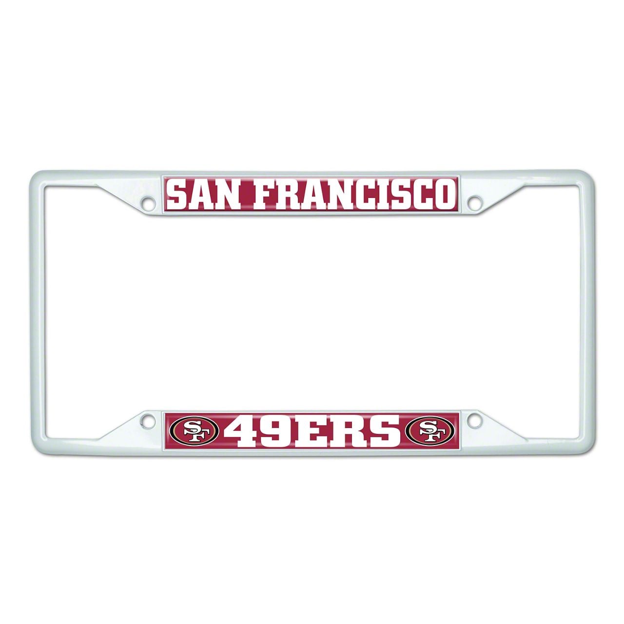 License Plate Frame with San Francisco 49ers; White (Universal; Some Adaptation May Be Required)