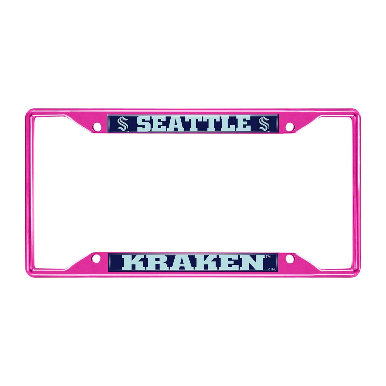 License Plate Frame with Seattle Kraken; Pink (Universal; Some Adaptation May Be Required)