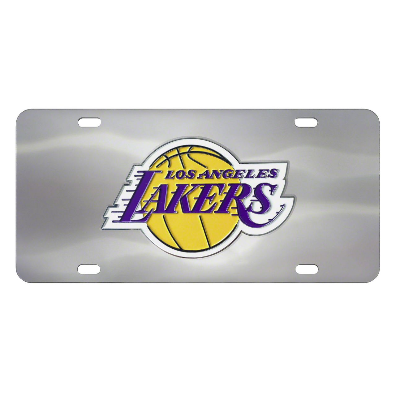 License Plate with Los Angeles Lakers Logo; Stainless Steel (Universal; Some Adaptation May Be Required)