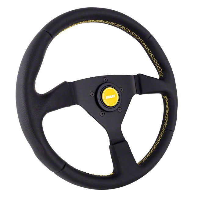 Performance Steering Wheel; 13.75-Inch; Black with Yellow Stitching