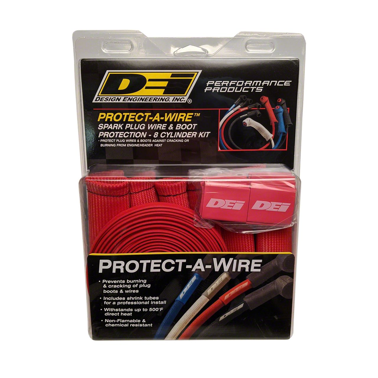 DEI Protect-A-Wire kits provide thermal protection for expensive spark plug wire sets. Protect your wires from potential burning, cracking, and hardening typically caused by severe under hood heat. DEI wire heat protection kits easily install by removing the distributor boot and sliding Protect-A-Wire™ over spark plug wire.