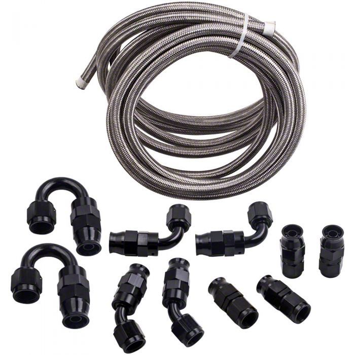 Stainless Steel Braided PTFE Fuel/Oil Hose Kit; -6AN; 20-Foot; Black (Universal; Some Adaptation May Be Required)