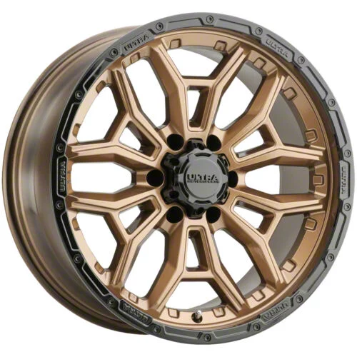 Ultra Wheels Warmonger 6 Bronze 6-Lug Wheel; 17x9; -12mm Offset offers a striking balance between style and durability. The design speaks to the brand's commitment to quality, enhancing the vehicle's appearance with its distinct look. This wheel, with its unique aesthetics, is ideal for drivers who appreciate a blend of modern design and robust functionality.