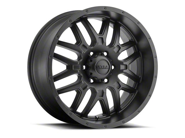 Ultra Wheels Hunter Satin Black 8-Lug Wheel; 18x9; 12mm Offset offers a striking balance between style and durability. The design speaks to the brand's commitment to quality, enhancing the vehicle's appearance with its distinct look. This wheel, with its unique aesthetics, is ideal for drivers who appreciate a blend of modern design and robust functionality.