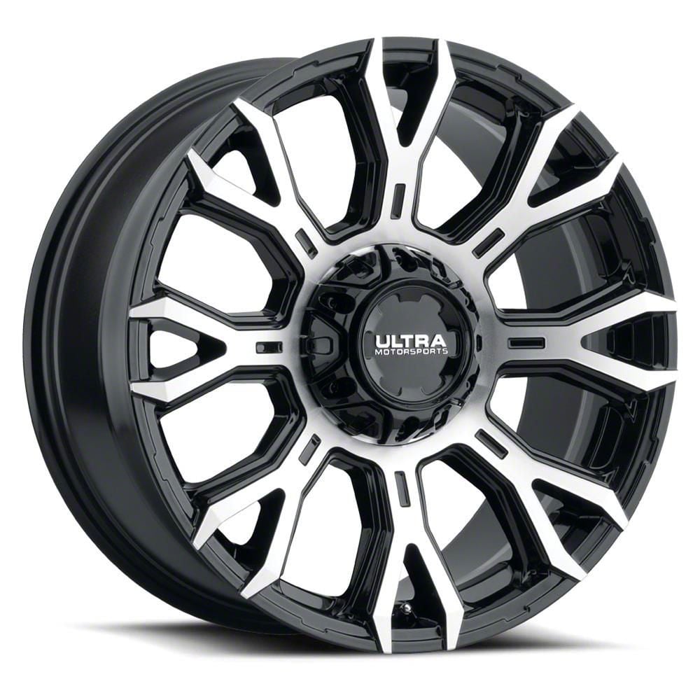 This 20x9 Ultra Wheels Scorpion Gloss Black with Diamond Cut Face 6-Lug Wheel is completed in a high-quality gloss black finish with diamond-cut accents for a striking appearance that will be the envy of everyone. There's a durable clear coat that helps protect against driving hazards.