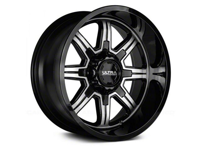 Ultra Wheels Menace Gloss Black with Diamond Cut Accents 6-Lug Wheel; 18x9; 18mm Offset offers a sleek and modern design that enhances the visual appeal of any vehicle. Crafted with attention to detail, this wheel merges aesthetic elegance with a robust build, making it a fitting choice for those seeking a blend of style and durability.