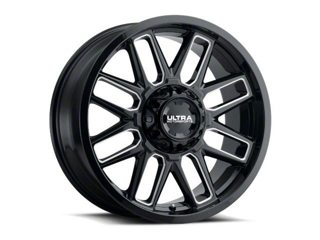 This 18x9 Ultra Wheels Butcher Gloss Black Milled 8-Lug Wheel is completed in a high-quality gloss black finish with steel milled accents that will create a striking appearance. There's a durable clear coat that protects against driving hazards.