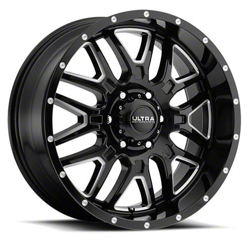 This 18x9 Ultra Wheels Hunter Gloss Black Milled 8-Lug Wheel is completed in a high-quality gloss black finish with steel milled accents that will be the envy of everyone. For added protection and looks, there is a durable clear coat that can handle the rigors of daily driving.