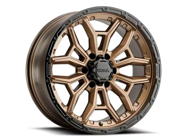 Ultra Wheels Warmonger 6 Bronze 6-Lug Wheel; 20x9; 18mm Offset. The Ultra Wheels Warmonger 6 Bronze 6-Lug Wheel offers a striking balance of style and refinement. Its unique design accentuates the vehicle's aesthetic, while the premium construction underscores its robust nature. This wheel is a perfect choice for those seeking both elegance and a strong visual statement.