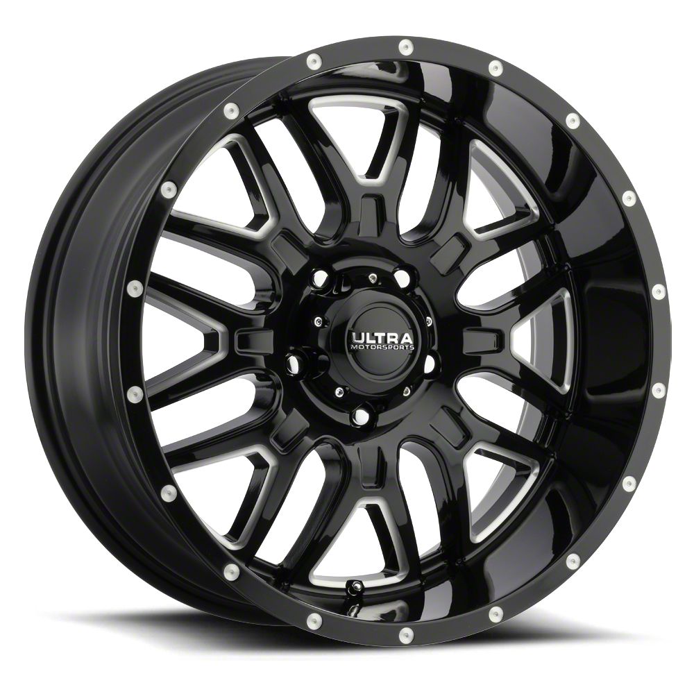 This 20x10 Ultra Wheels Hunter Gloss Black Milled 5-Lug Wheel is completed in a high-quality gloss black finish with steel milled accents that will make the wheel the envy of everyone. There is a durable clear coat that protects against driving hazards.One-Piece Cast Aluminum Construction. This wheel is manufactured using gravity casting. Gravity casting is the process of pouring a molten aluminum alloy into a wheel mold or form utilizing the earth's own gravity to help fill the mold. The result is a strong, durable wheel that has the same good looks as a more expensive wheel, at a fraction of the price.