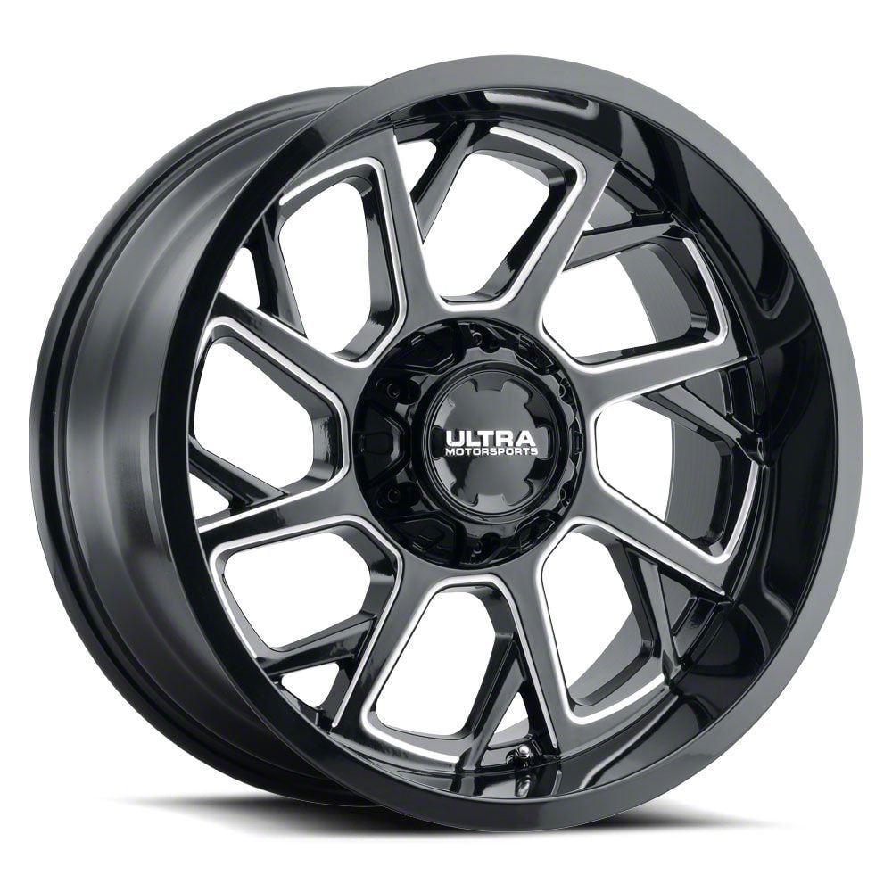 This 20x9 Ultra Wheels Patriot Gloss Black Milled 5-Lug Wheel is completed in a high-quality gloss black finish with steel milled accents that will make the wheel the envy of everyone. There is a durable clear coat that protects against driving hazards.
