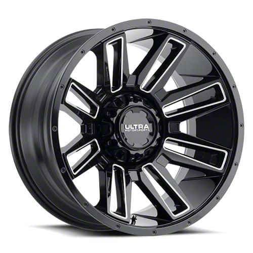 The 20x10 Ultra Wheels Apocalypse Gloss Black 8-Lug Wheel is completed in a high-quality gloss black finish for an aggressive appearance that will make others green with envy. For added protection and good looks, a clear coat is added.