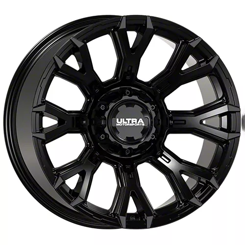The 20x10 Ultra Wheels Scorpion Gloss Black 6-Lug Wheel is completed in a high-quality gloss black finish, which looks great. Thanks to a durable clear coat, the finish also protects against the rigors of driving.
