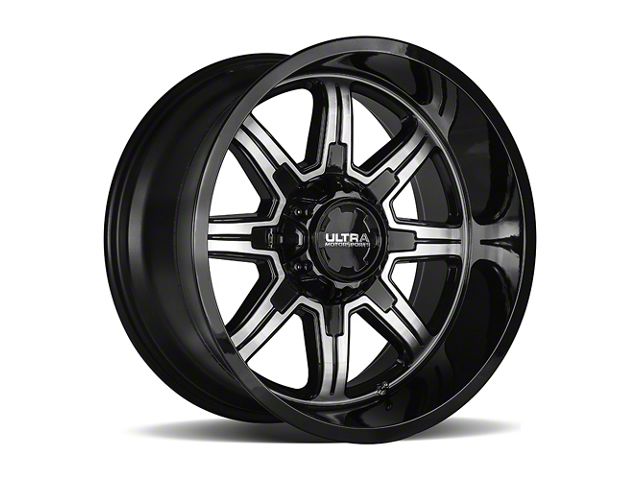Ultra Wheels Menace Gloss Black with Diamond Cut Accents 6-Lug Wheel; 20x9; 18mm Offset exudes sophistication with its finish, offering a sleek and modern appeal to any vehicle it adorns. The design is meticulously crafted to enhance the aesthetic of your vehicle, giving it a distinctive and upscale look. Perfect for those seeking to elevate their vehicle's style, this wheel blends seamlessly with both contemporary and classic vehicle designs, making it a versatile choice for a wide range of vehicles. Its robust construction ensures durability, making it a reliable choice for drivers who value both style and quality.