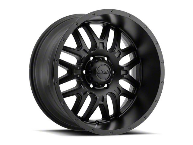 Ultra Wheels Hunter Satin Black 8-Lug Wheel; 18x9; -12mm Offset. The Ultra Wheels Hunter Satin Black 8-Lug Wheel offers a striking balance of style and refinement. Its unique design accentuates the vehicle's aesthetic, while the premium construction underscores its robust nature. This wheel is a perfect choice for those seeking both elegance and a strong visual statement.