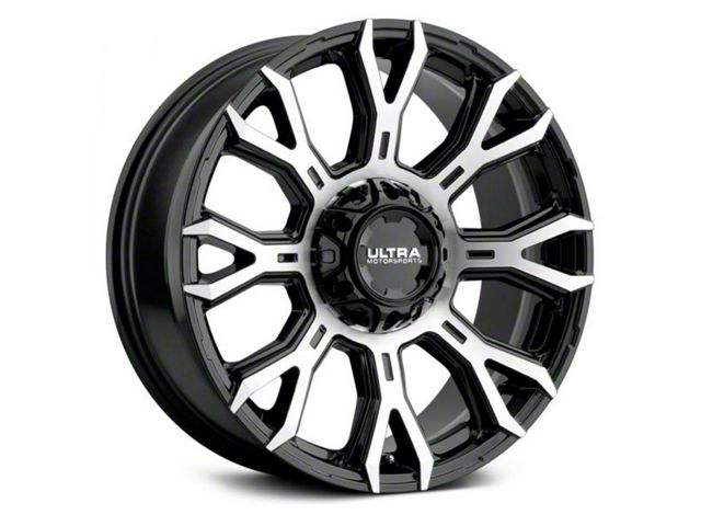 The 17x9 Ultra Wheels Scorpion Gloss Black with Diamond Cut Face 8-Lug Wheel is completed in a high-quality gloss black finish with contrasting accents. There's a durable clear coat that looks amazing and protects the wheel against the rigors of driving.