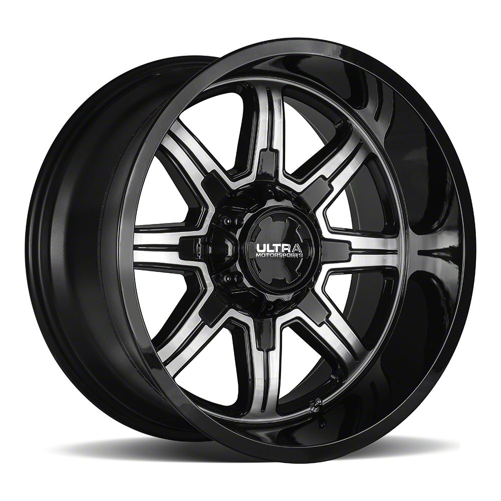 Ultra Wheels Menace Gloss Black with Diamond Cut Accents 6-Lug Wheel; 20x9; 18mm Offset. The Ultra Wheels Menace Gloss Black with Diamond Cut Accents 6-Lug Wheel offers a striking balance of style and refinement. Its unique design accentuates the vehicle's aesthetic, while the premium construction underscores its robust nature. This wheel is a perfect choice for those seeking both elegance and a strong visual statement.