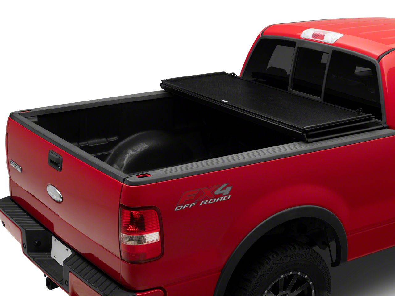 Strong Hard Folding Design. Made for the Ford F-150 Styleside with 6-1/2 foot beds, this UnderCover Tonneau Cover has a matte black finish and 2 riding positions. Compatible with tailgate clamps, this tonneau cover has a triad hard folding design that can support up to 600 pounds of evenly distributed weight.