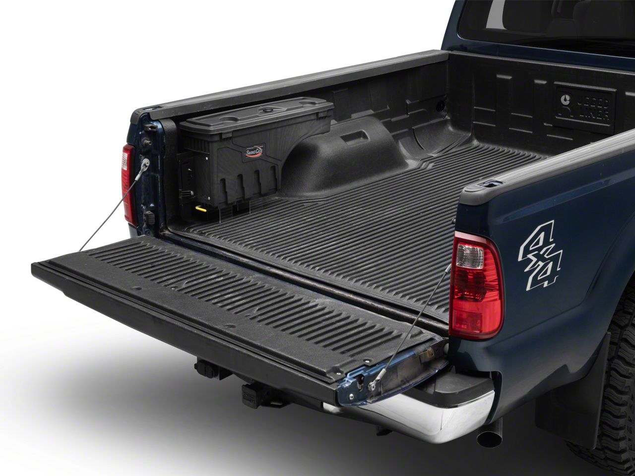 Convenient Storage. A messy truck bed can consume your Super Duty’s cargo space reserved for more important items. To help solve this problem, you need to get this Driver Side UnderCover Swing Case Storage System. With 1.5 cubic feet of storage space, this swing case can easily organize tools and other gear lying around in the bed of your Super Duty. This storage system can be tucked against the sides of the truck bed or they can be completely removed to free up more space in your truck bed. To prevent thieves from taking your items, this storage case comes with a twist lock that can be used even if you don’t have a key with you.