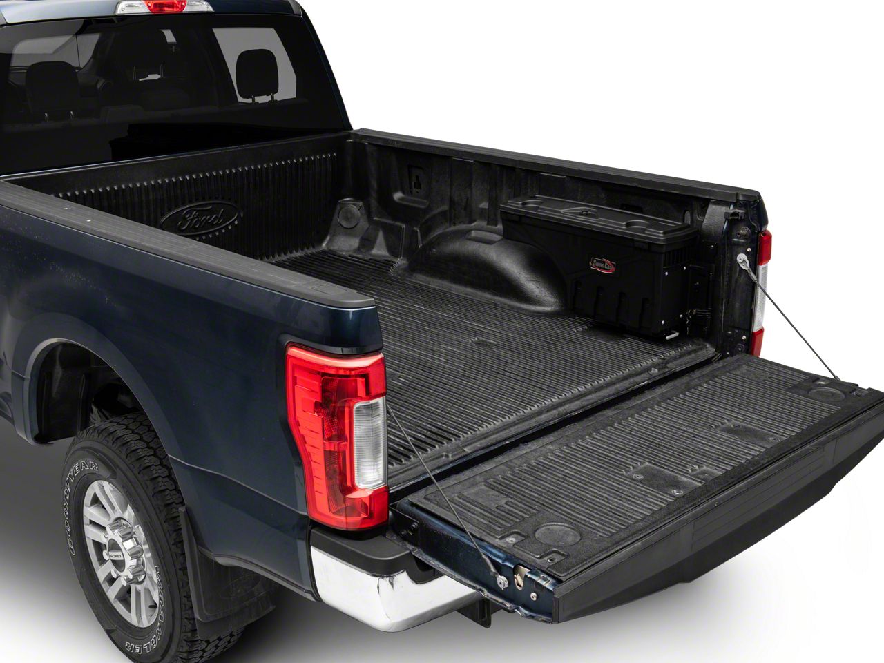 Extra Space for Additional Items. Too much clutter in your Super Duty’s cargo area can take up valuable space meant for more important items. Free up some much-needed space with the help of this Passenger Side UnderCover Swing Case Storage System. Designed to perfectly fit in the sidewall of your Super Duty, this storage case can accommodate up to 75 pounds of extra cargo. This Swing Case Storage System is completely removable and portable, so if you ever need more space in your Super Duty’s truck bed, just unbolt this storage case and you’re good to go.