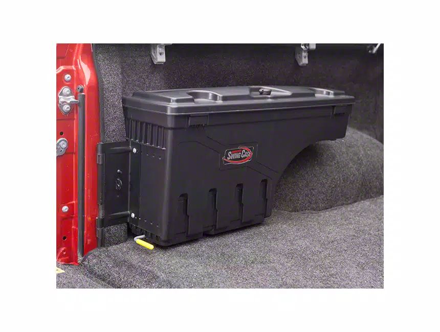 Versatile Storage Solution. The UnderCover Swing Case Storage System is a convenient and innovative storage box designed for the driver side of your truck. It offers quick and easy access to your tools and gear, thanks to its swing-out feature and quick-release latch, making it essential for anyone looking to maximize their truck bed storage.