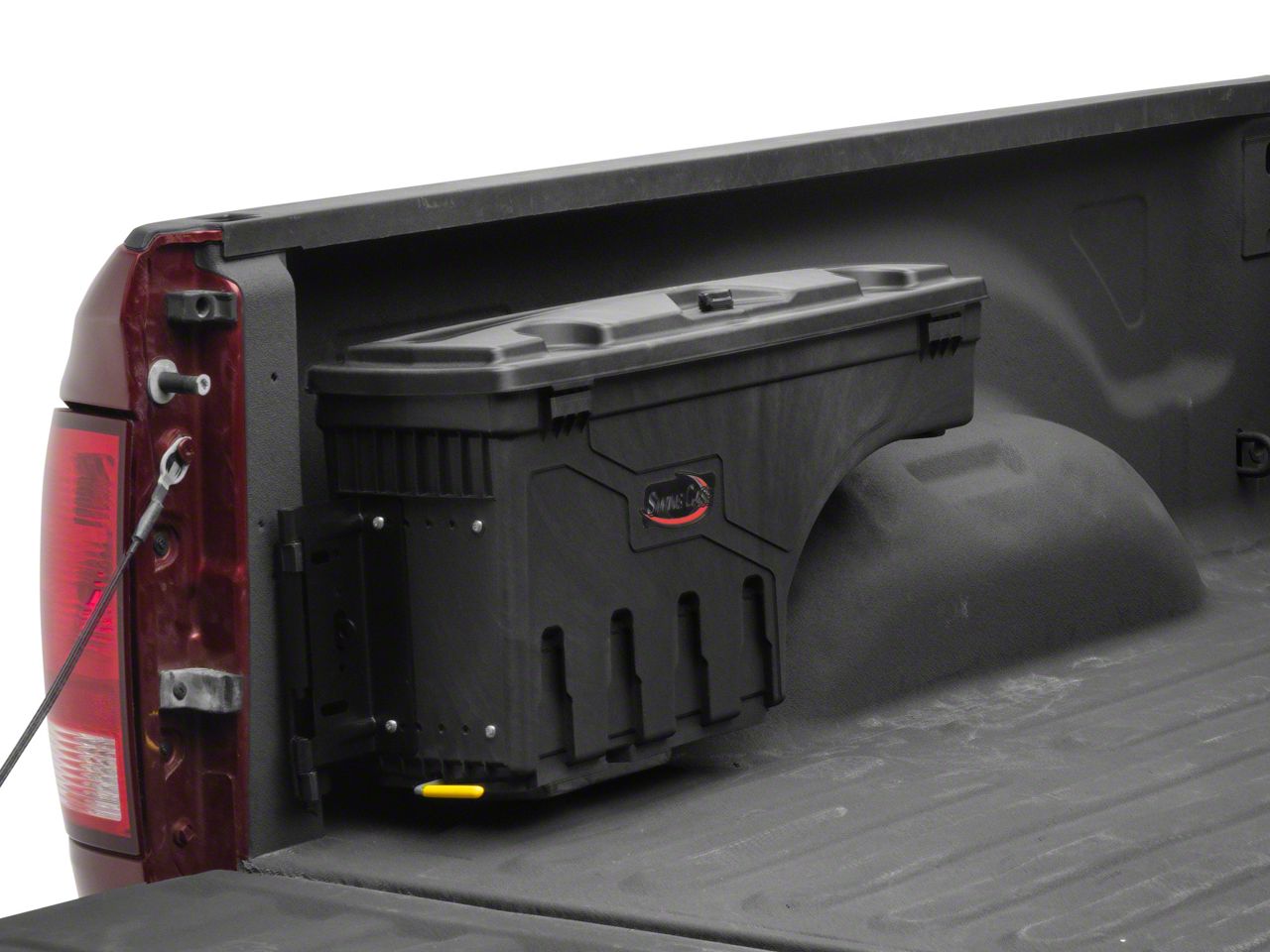 Convenient Organizer. Keep your tools and small gear well packed behind your RAM 2500, and secure them safely in this UnderCover Swing Case Storage System; Passenger Side. This Plastic Container attaches near your truck's tailgate and provides superior stowage for your goods. It's meant to arrange and divide the contents in your truck bed for easier handling.