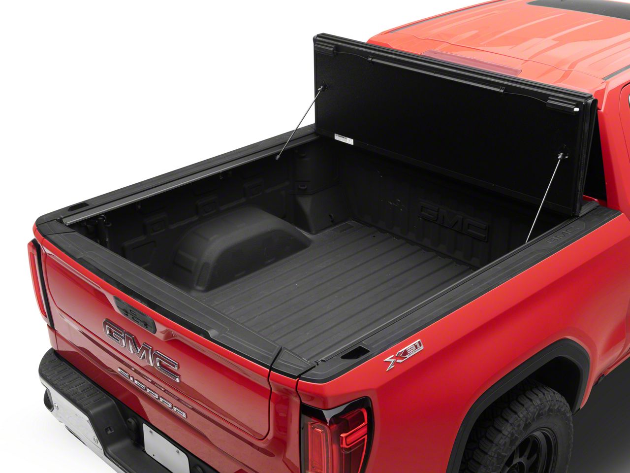 Tri-Fold Design. The tri-fold design of this tonneau cover provides you a quick and simple way to access your cargo. Depending on the size of your cargo, you will be able to travel with the cover in the closed or open position without having to take the entire cover off your Sierra. Ultimately, this cover provides 3 secure riding positions.