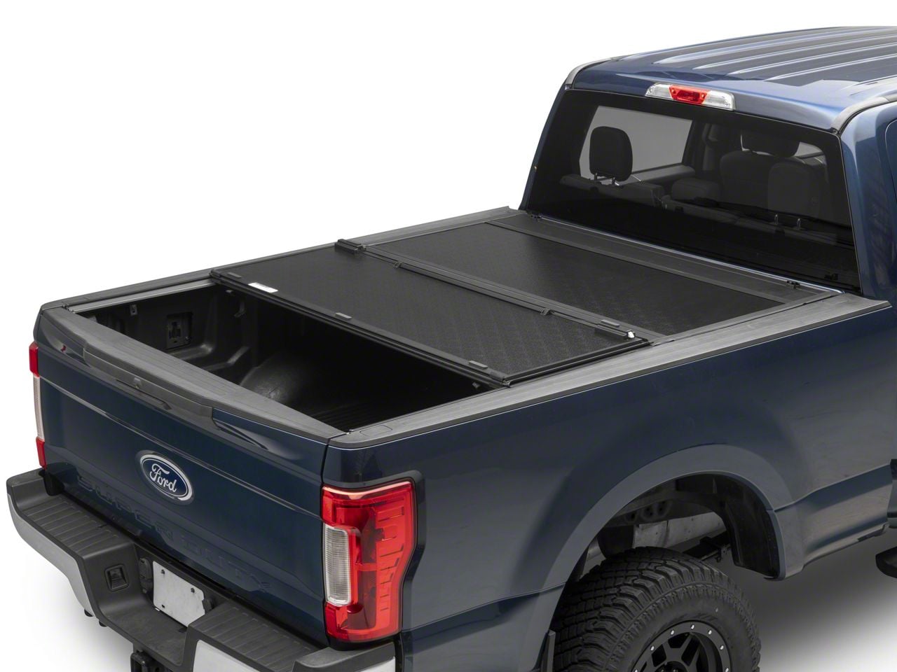 Tri-Fold Tonneau Cover. With the tonneau cover’s tri-fold functionality, you won’t have any trouble accessing the entire truck bed. Once the panels are unlocked, simply fold it to your desired position and place your cargo on the truck bed with ease.
