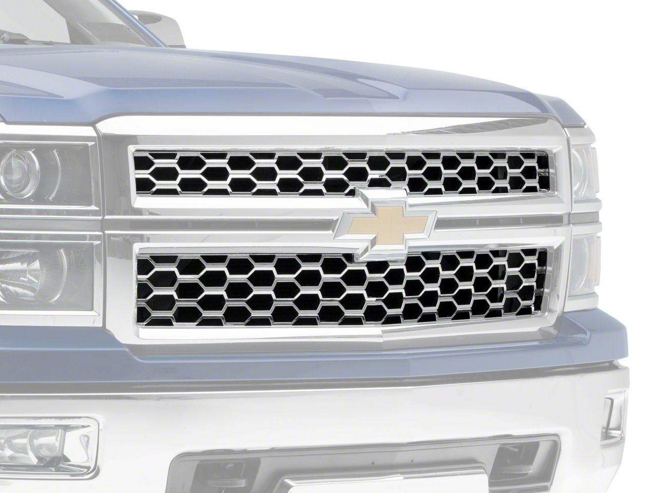 Quick Makeover. For a quick makeover, you can install this Chrome Upper Grille Overlay on your Silverado. This Grille Overlay sets your truck apart with its high-quality 2-piece design, coated with a shiny chrome finish. Aside from its appealing look, it effectively protects your truck’s radiator and engine from damaging road debris.