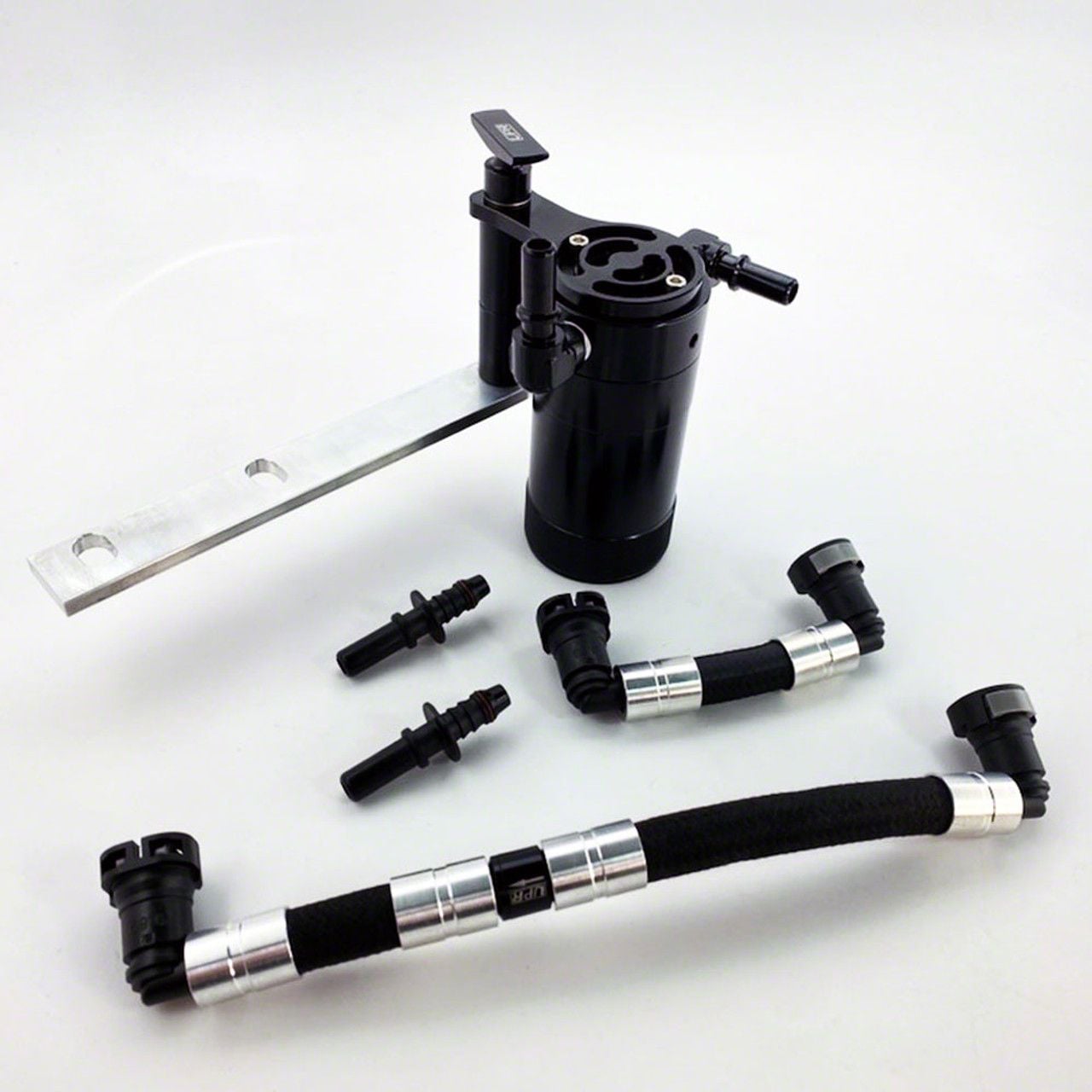 This New UPR Single Valve Catch Can kit is the perfect fit for your 99-04 Ford Lightning pickup's engine bay! With its extremely efficient compact design and incredible looks to top it off We went the extra mile to ensure you get the best quality components. This kit is 100% NO DRILL INSTALLATION, and can be fully disassembled or emptied and cleaned in seconds. You can select to install just the passenger side ("Dirty Side") catch can kit or you can add the optional driver side ("Clean Side") catch can for 100% protection. It utilizes UPR Braided Hose and Billet Hose Ends to give you the Strongest and Best Performing Setup Possible- No cheap stock lines here that have been cut and spliced on! Featuring the New UPR Plug N Play ™ Catch Can Fittings, you can empty the can without removing the catch can lines from your engine. (UPR Exclusive Push Button Fittings) We have hundreds of hours testing our new Multi-Stage Oil Separator to ensure proven results will exceed your expectations. We even got the largest oil capacity for a compact highly efficient internal diffuser system. 4 ounces will give you the needed oil capacity to be sure the catch can does not overfill.