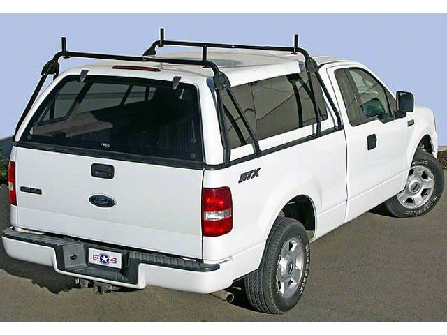 Description. Truck Cap Universal Rack. The Truck Cap Rack is a two section rack that rests on the truck bedrails without touching the top of the Cap and carries up to 250 lbs. The Truck Cap Rack mounts without drilling. It's a very nice fit over any standard camper shellInstalls easily without drilling your pickup or your cap and holds securely by sliding the feet of the rack under the camper shell from the side*. It can be removed and disassembled for compact storage in a few minutes. This truck rack will not work with a form fitting shell with an exterior that laps over the outside of the truck bed and extends down below the top of the bedrail. Triangle leg design provides great stability for this rack for carrying all types of long cargo. This rack can be installed using screws and nuts (even on a truck without a camper shell). It can also be installed without screws if used with a shell that is properly clamped or bolted down. Four tie-down loops on the sides make tying down cargo on your rack with ratchet straps, bungee cords or ropes a cinch. Adjustable cargo bumpers on the crossbars allow you to bracket cargo such as ladders or lumber. Adjustable in width and fit camper shells on full-size or small trucks with beds lengths from long down to extra-short. For Caps Under 27 Inches. Standard Bed Rails. Mild Steel. Made in USA. U.S. Rack products are warranted for a period of one year against all structural defects in materials and workmanship provided that they are assembled, installed, and used in accordance with all manufacturers specifications and instructions. U.S. Rack cannot warrant the powder-coating on its products.