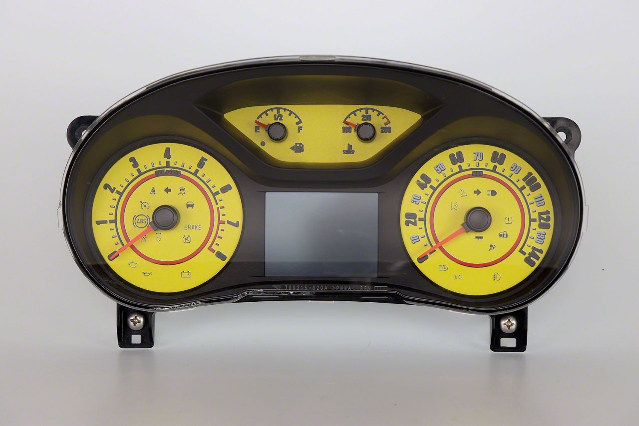 Visual Enhancement. This Gauge Face is a stylish and functional upgrade for your Colorado, designed as a direct replacement for the stock gauge face. It features vibrant yellow numbers and graduations on a sleek black background, enhancing both the clarity and the aesthetic of your vehicle's dashboard.