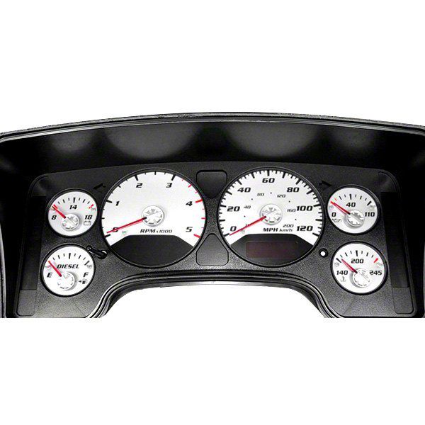 Application. This US Speedo Daytona Edition Gauge Face Overlay; White is designed to fit 2006 RAM 1500 models.