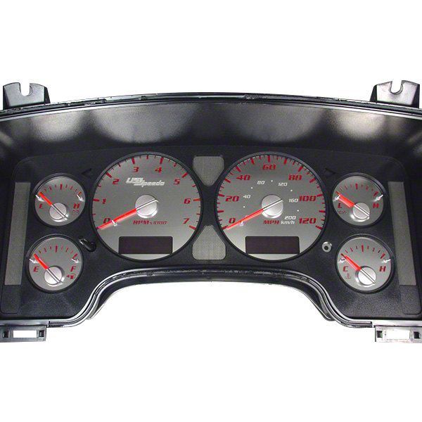 Direct Replacement. A solid upgrade designed for Ram 1500 models, the US Speedo Stainless Edition Gauge Face is a cool and modern reface of the stock gauge face with bold red lettering, needles, and matching MPH notations.