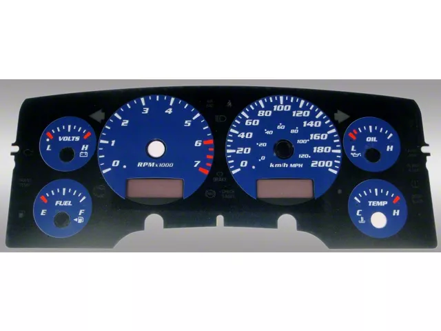Style Boost. Upgrade with the US Speedo Daytona Edition Gauge Face, the perfect style boost for your RAM 2500. This premium speedometer gauge face is made with a racing-inspired Daytona Edition styling, with a sleek blue color and KMH unit of measurement.