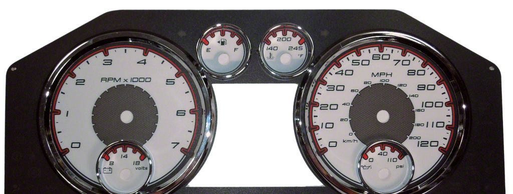US Speedo Daytona Edition Gauge Face; KMH; 6-Gauges; White (10-12 RAM 5.7L 3500)Find parts that fit my vehicle