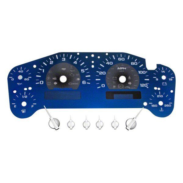 High Quality Structure. The US Speedo Aqua Edition Gauge Face is meticulously crafted from high-quality stainless steel, ensuring durability and longevity. The anodized blue gauge and lighting colors give your dashboard a unique and eye-catching appearance, adding a touch of style and personalization. The silkscreened design is precise and detailed, providing clear and accurate readings for your vehicle's gauges. Additionally, this gauge face is protected from harmful UV rays, preventing damage and fading caused by sun exposure.