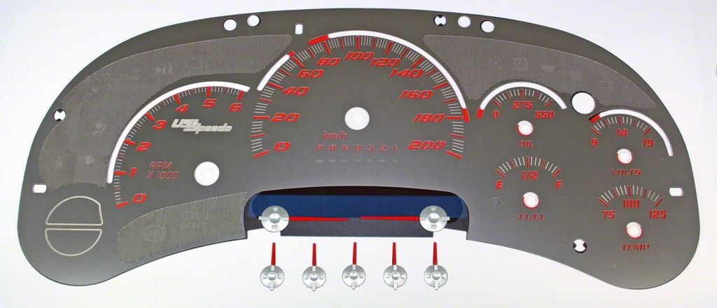 US Speedo Stainless Edition Gauge Face; KMH; Red (2006 Sierra 1500)Find parts that fit my vehicle