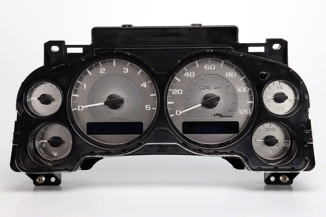 First-Rate Functional Design. The US Speedo Stainless Edition Gauge Face features a clean and sleek design with a white face color and numbers, adding a modern touch to your instrument cluster. Made from high-grade polycarbonate plastic, the gauge face is screen-printed with precision to ensure clear and accurate readings. It displays the complete factory data, allowing you to monitor your vehicle's performance with ease. Additionally, the gauge face includes a needle removal tool, making installation a breeze.