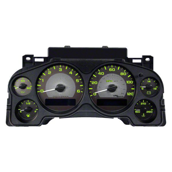 Quality Construction. Built in the USA using high quality stainless steel, this gauge face creates a new feel for your vehicle’s interior aesthetics with precise and easy-to-read white lettering and needles. The gauge face is also set to a maximum speedometer range of 120 MPH and a tachometer range maximum of 5000 RPM.