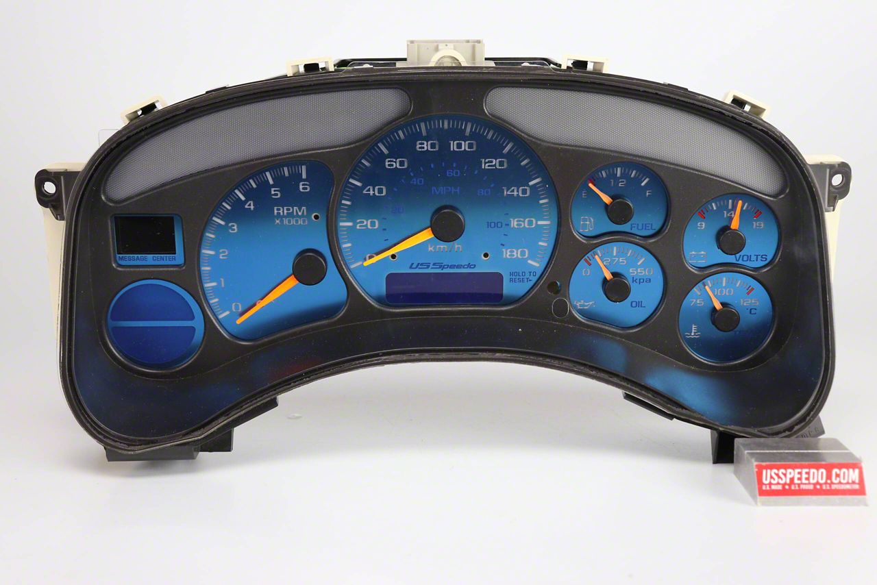 Application. The US Speedo Aqua Edition Gauge Face; KMH fits 1999-2002 Silverado 1500 models.