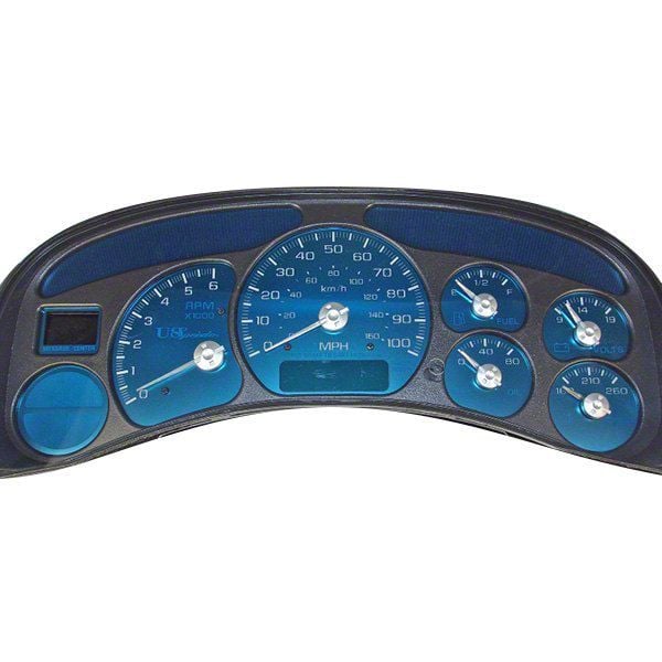 Application. A US Speedo Aqua Edition Gauge Face is designed to be precisely suitable with 1999-2002 Silverado 1500s.